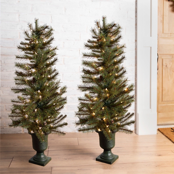 4 Ft Pre Lit Pine Topiaries In Urns Set Of 2 Kirklands Christmas Tree Wire Form