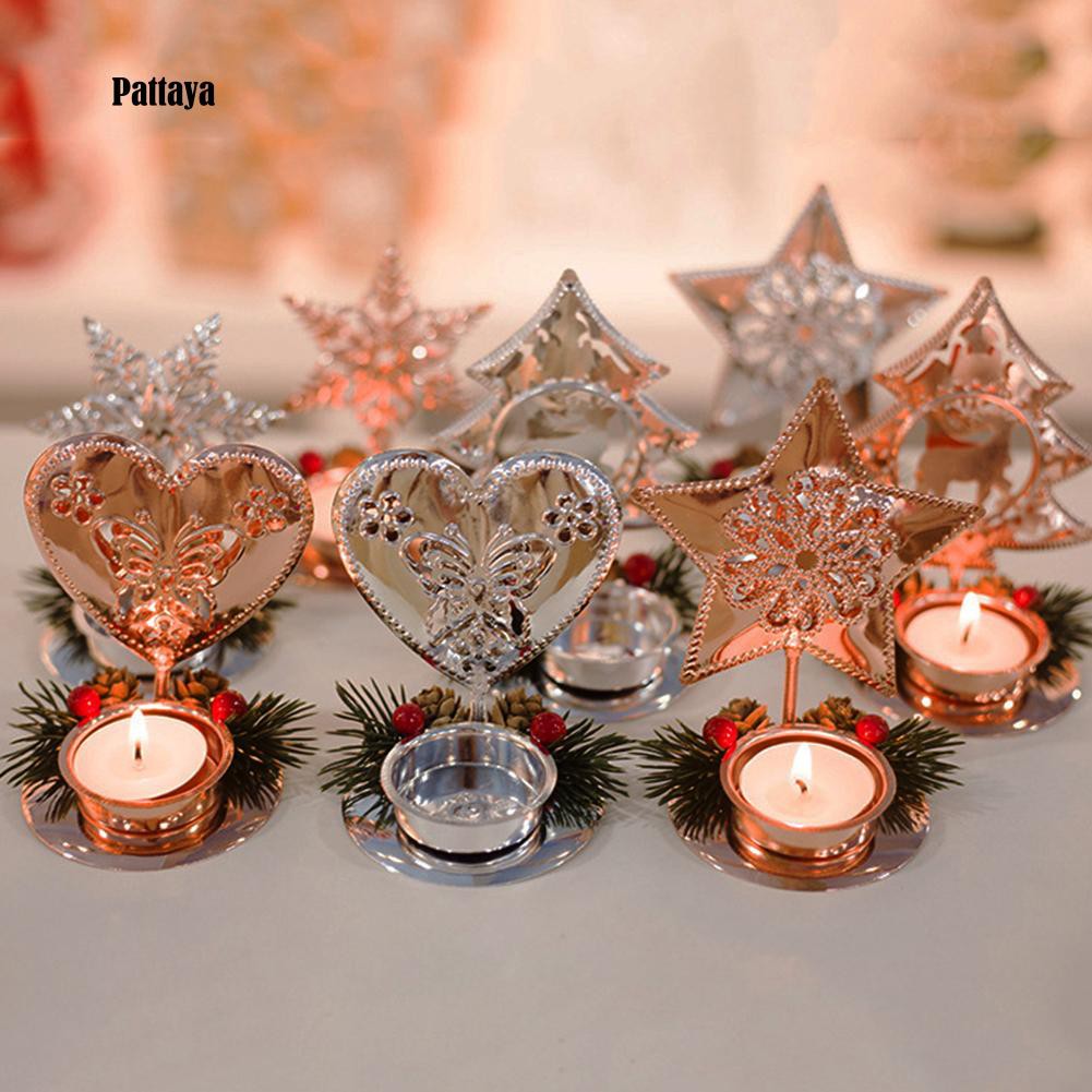 - Vova Christmas Candle Holder Stand Elk Snowflake Christmas Tree Candlestick Festival Xmas Party