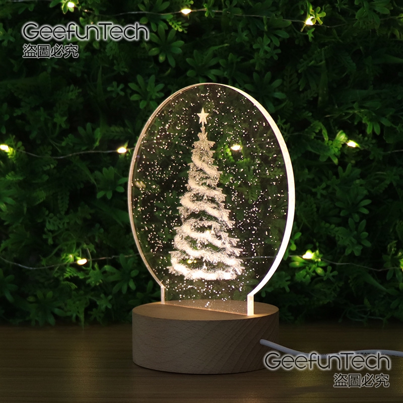 - Clear 3d Christmas Tree Table Light Kids Acrylic Led Nightstand Lamp With Wood Round Base Beautifulhalo Com