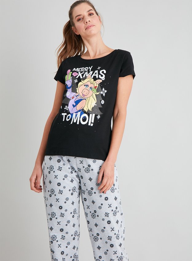 Womens Christmas The Muppets Miss Piggy Black Grey Pyjamas Tu Clothing Ms Christmas Food 2020 Gin